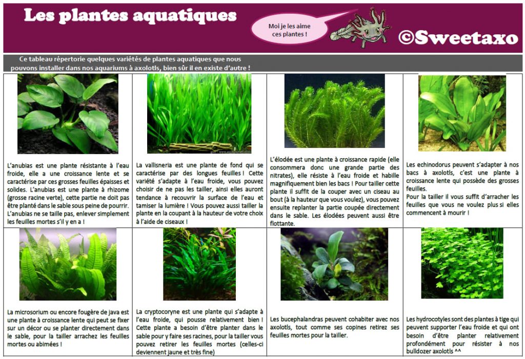 Cependant, toutes les plantes ne pourront pas s’épanouir dans l’eau fraîche de nos axolotls.